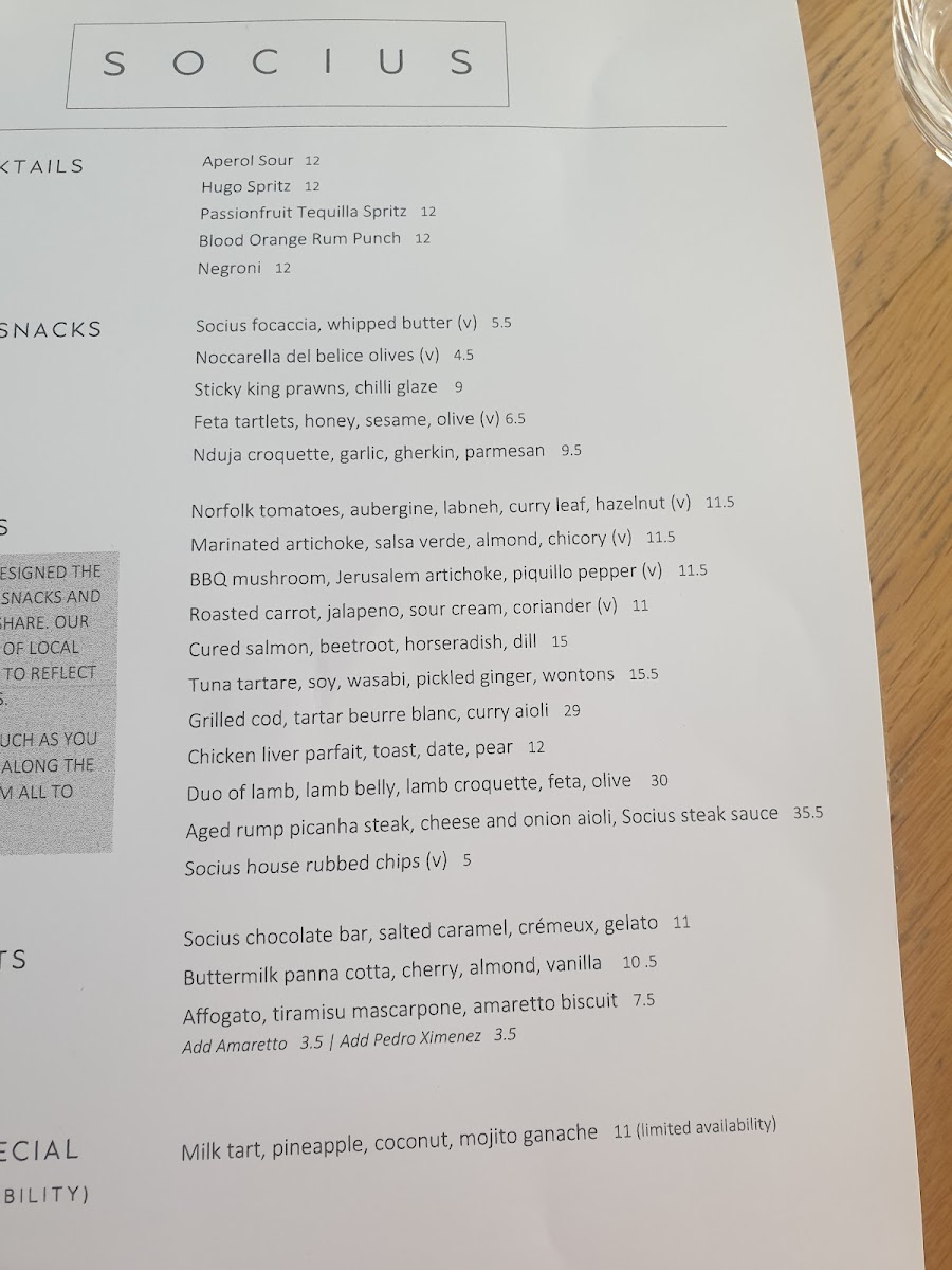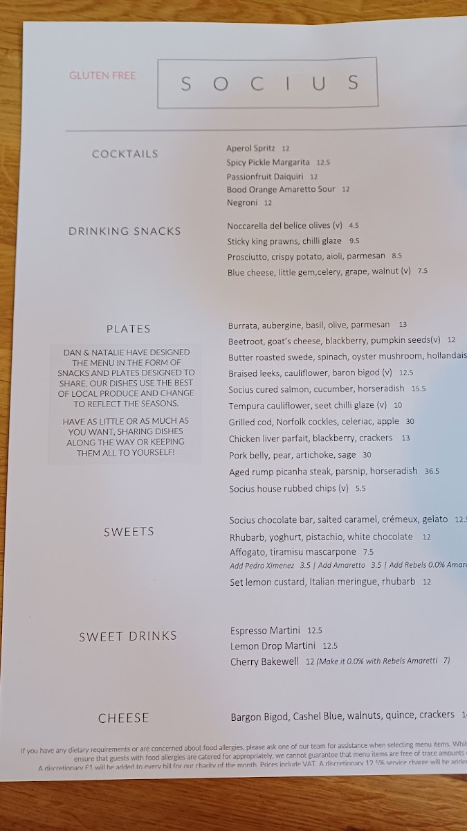 Socius, located at 11 Foundry Pl, Burnham Market, King's Lynn PE31 8LG, is a sophisticated dining destination that offers a modern take on British cuisine with a focus on seasonality and local ingredients. The menu at Socius is thoughtfully curated, offering a balance between creative dishes and timeless classics.